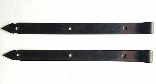 ZAWIASY PASOWE dł. 400mm, grubość 4 mm Ozdobne do bram furtek drzwi okiennic Mocne 2 szt. Ozdobne zawiasy pasowe, ...