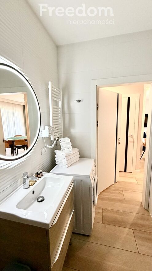 Atrakcyjnie, kolorystycznie wykończona łazienka, pralka i
