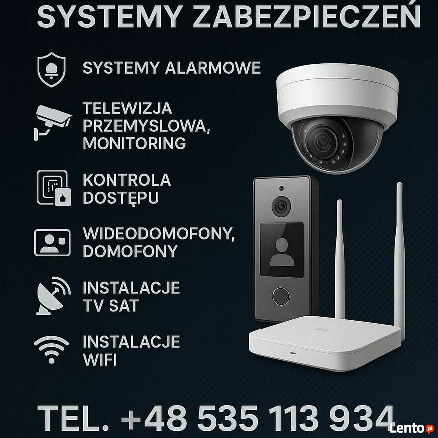 Oferujemy usługi w zakresie montażu systemów alarmowych serwisu oraz naprawy. Zajmujemy się również montażem kamer monitoringu a także montażem i ustawieniem anten satelitarnych i naziemnych .Pracujemy cały tydzień .