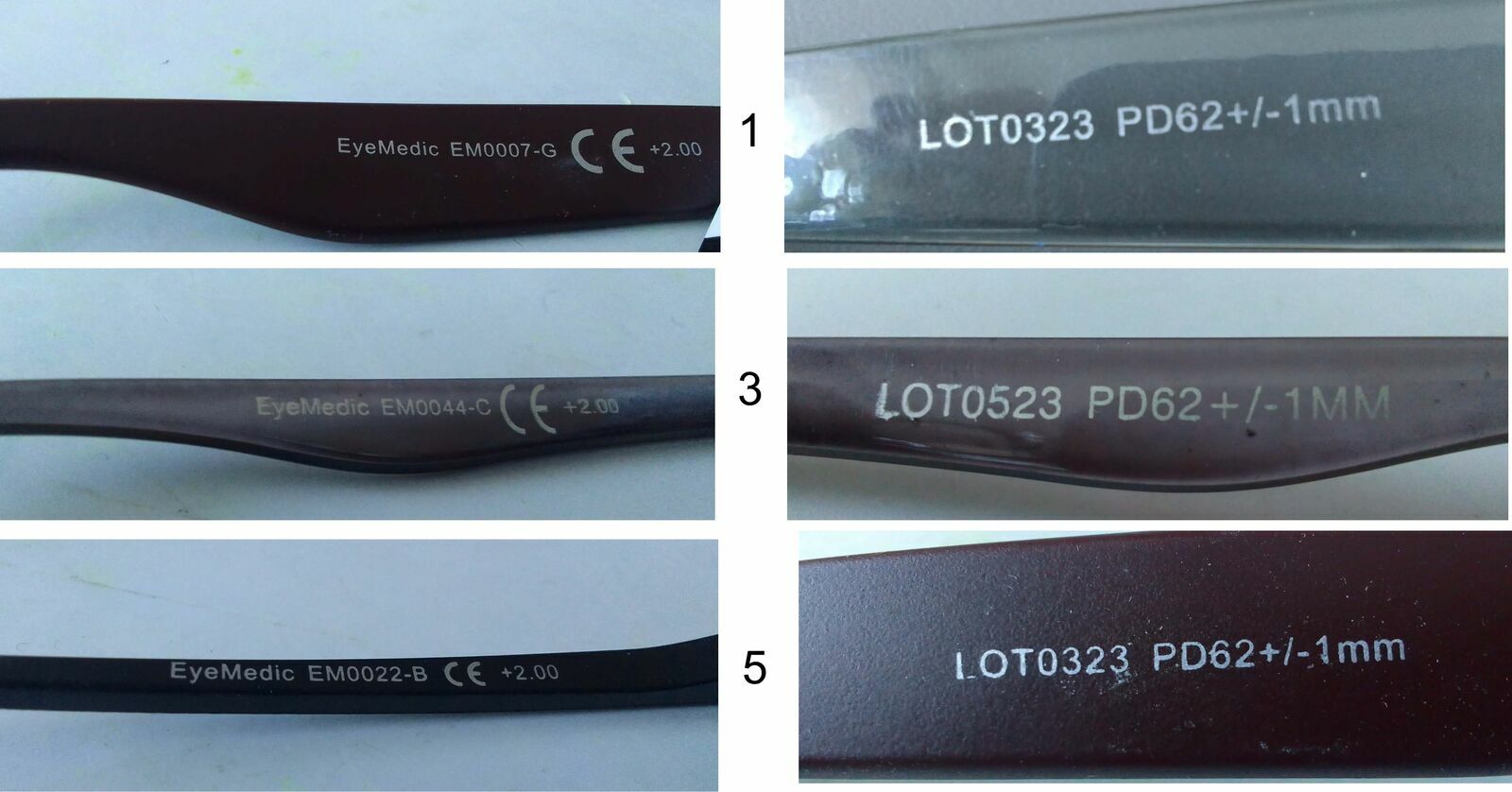 • Okulary posiadają oryginalne oznaczenia na wewnętrznej stronie zauszników, m.in. numer modelu, kategoria filtra oraz oznaczenie zgodności CE.