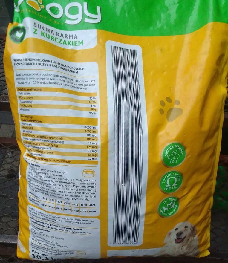 Sucha karma z kurczakiem dla psa psów średnich i dużych DOOGY 10,3 kgWorek suchej karmy, NOWY, fabrycznie zamknięty