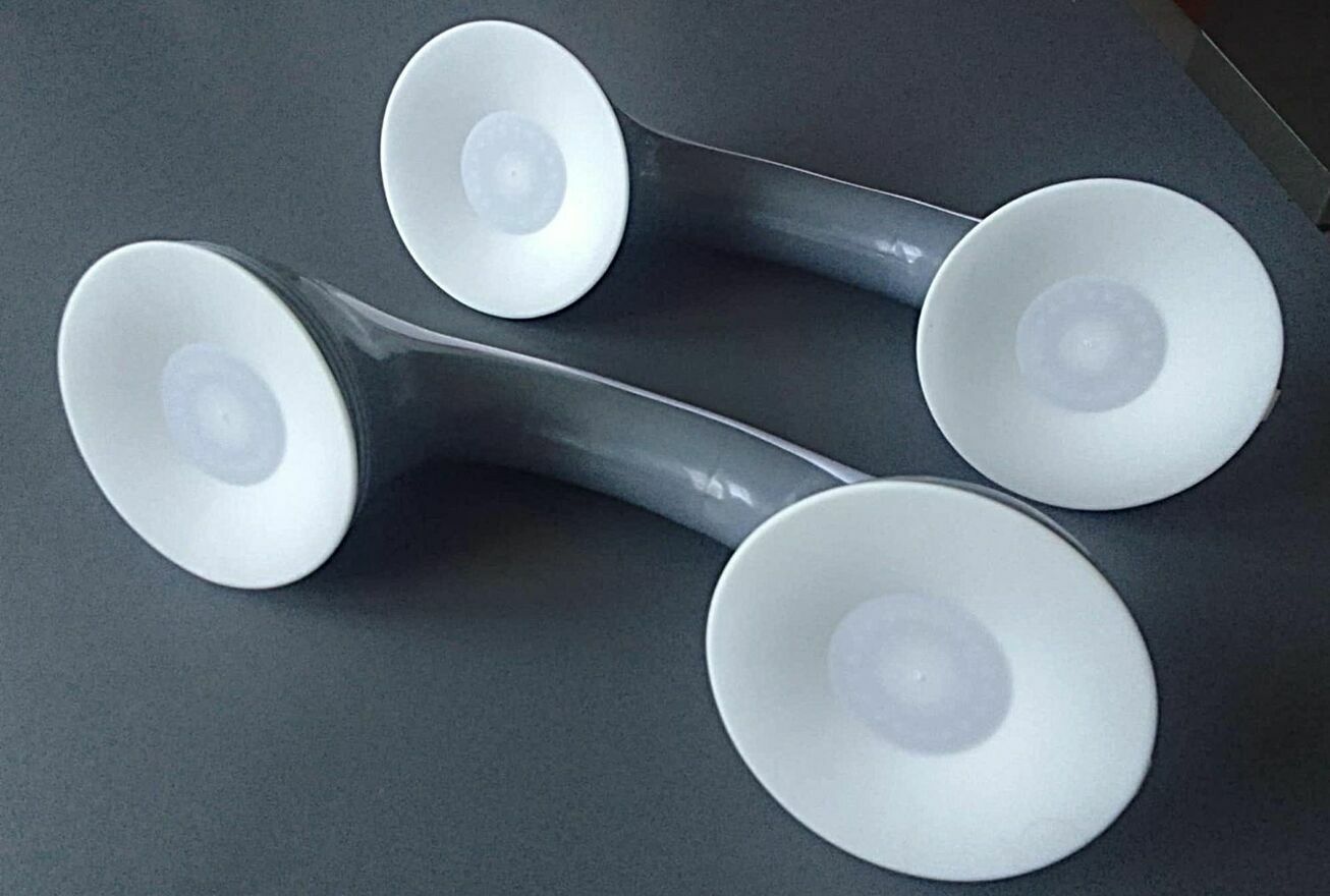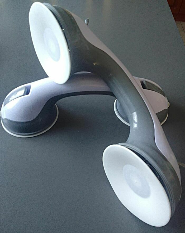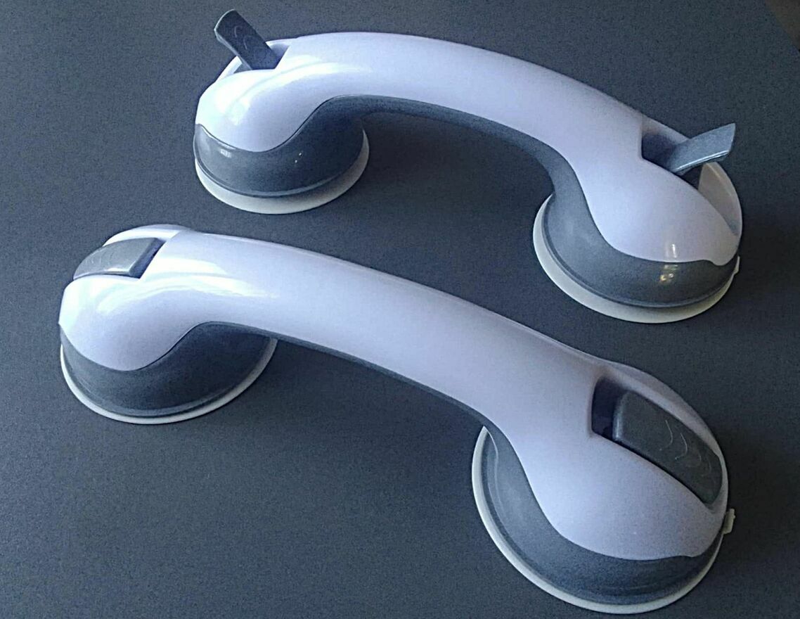 Uchwyt łazienkowy 2 szt. Poręcz dla seniora Przyssawki NOWE.Uchwyty z mocnymi i dużymi przyssawkami działającymi na gładkich, nieporowatych powierzchniach: płytkach, szkle, porcelanie czy włóknie szklanym. Montaż łatwy i szybki, nie zostawiają śladów.
